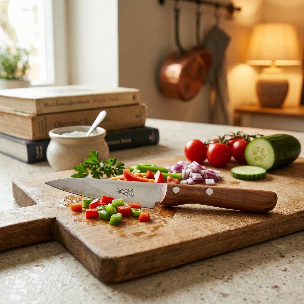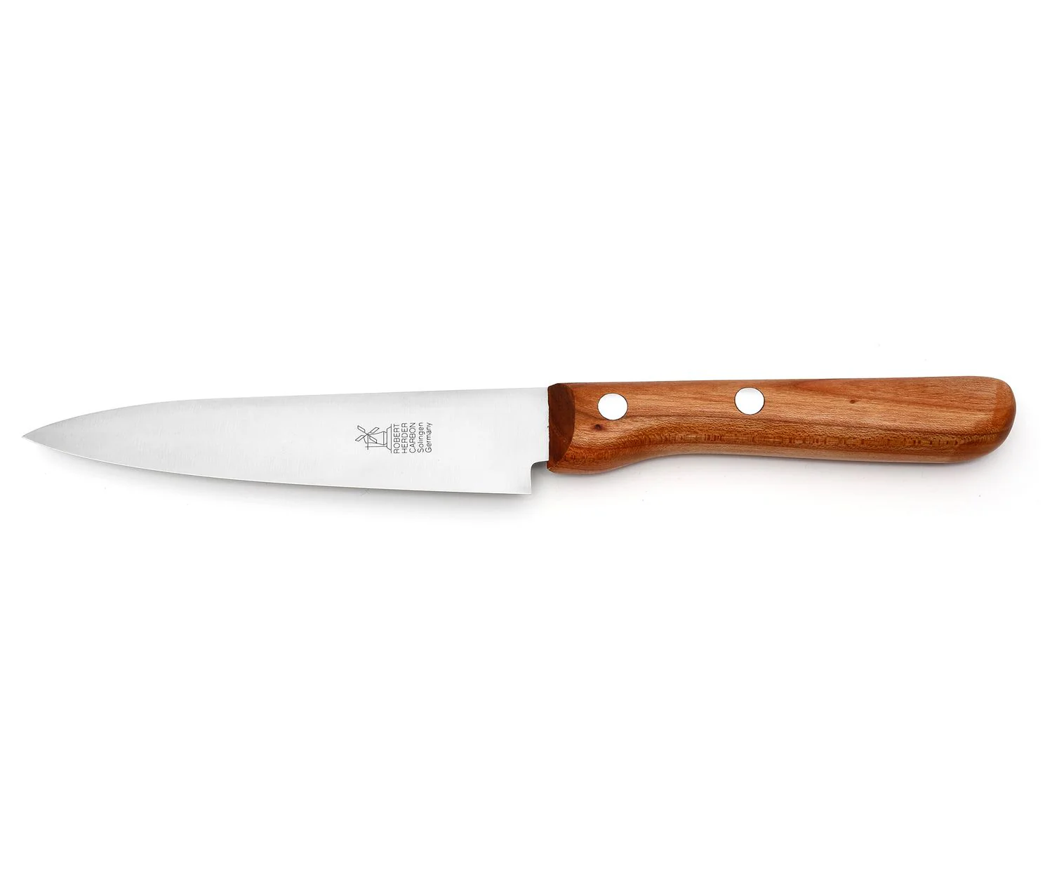 Das Windmühlenmesser Vielzweckmesser „Petty“ ist ein kompaktes Allroundmesser, das traditionelle Solinger Handwerkskunst mit hoher Funktionalität verbindet. Mit seiner schlanken, etwa 130 mm langen Klinge eignet es sich ideal für präzise Schneidarbeiten in der täglichen Küchenpraxis. Ob Obst, Gemüse, Fleisch oder Kräuter – das Petty überzeugt durch seine Vielseitigkeit und ist ein zuverlässiger Begleiter für nahezu alle feinen Vorbereitungsarbeiten. Die spitz zulaufende Klingenform ermöglicht exaktes Arbeiten sowohl auf dem Schneidbrett als auch in der Hand. Dank der ausgewogenen Geometrie gleitet die Klinge mühelos durch unterschiedlichstes Schneidgut und sorgt für saubere, kontrollierte Schnitte. Der charakteristische „Solinger Dünnschliff“ sowie die aufwendige Handbearbeitung verleihen dem Messer eine außergewöhnliche Schärfe und ein besonders angenehmes Schneidgefühl. Der ergonomisch geformte Griff aus Holz liegt angenehm in der Hand und ermöglicht auch bei längeren Arbeiten ein ermüdungsfreies und sicheres Handling.